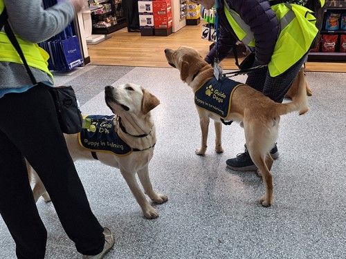 With many guide dog owners in Southampton and surrounds, visits such as this are an important part of early training for guide dog puppies, helping them to feel comfortable and confident in the type of places that a guide dog owner might choose to go to.